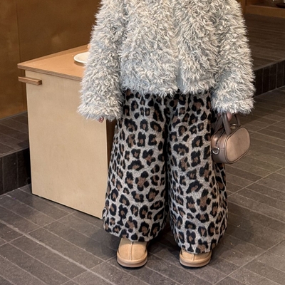 - 비다이어리.론레오파드호피기모와이드팬츠