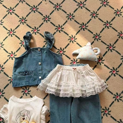 - 아이아이.봄)와이드프릴데님상하세트