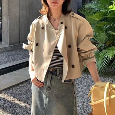 on.[CT133]스트랩크롭트렌치코트