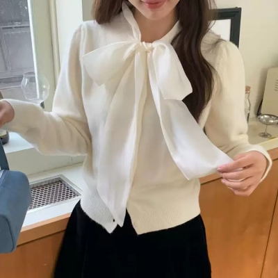 on.[CD604]리본타이울가디건