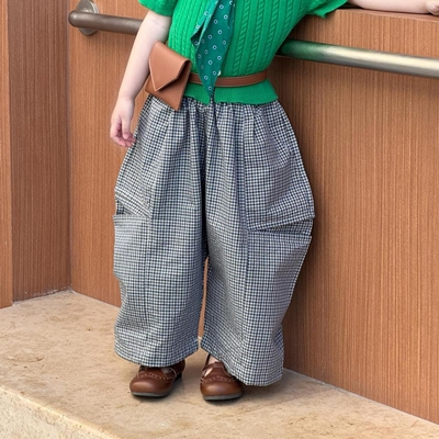 비다이어리.깅엄체크벌룬팬츠